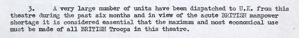 - The National Archives, War Diary WO 204/10206 Reorganisation of formations – January-December 1944, Minutes of AFHQ Meeting 17th January 1944 concerning Re-organisation of Forces, page 2, section 7. ↩︎