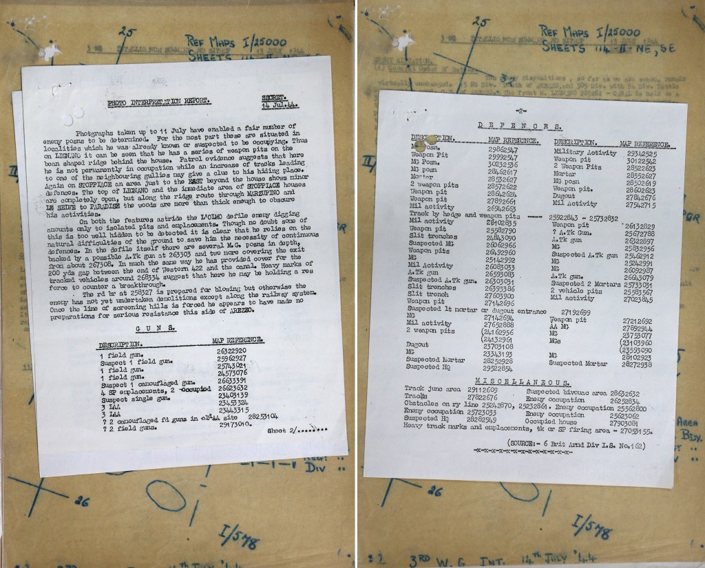 In July 1944 the Germans temporarily delayed the advance Allied advance to Florence at Arezzo through the creation of a stiff defensive line along the crest of the mountain ridge dominated by Monte Lignano. Not only was this position extremely defensible, it enabled the total domination of the surrounding area through unrestricted observation (and thus artillery interdiction) of the only approach to Arezzo from the west via the L’Olmo pass. Elements of 6th Armoured Division were deployed there in early July 1944.