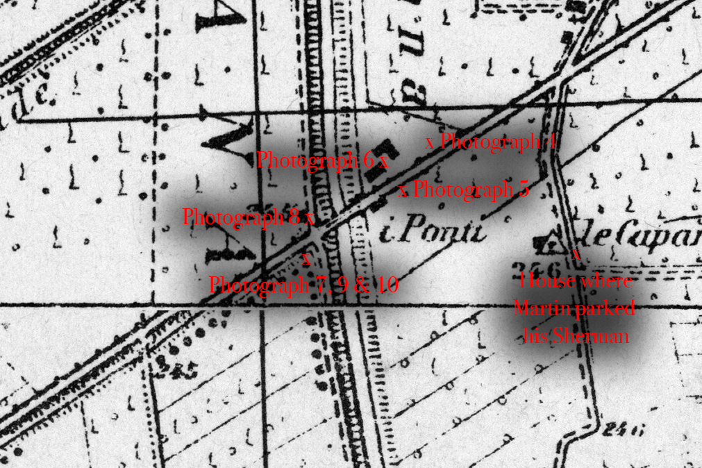 I have marked the location of the my photographs on a contemporary wartime map so that they can be traced by those wishing to visit the site of the action.