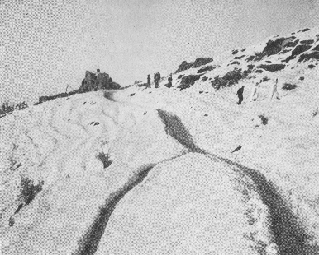 “Although perhaps more severe fighting has been experienced in the past, for sheer physical stress and discomfort, this period has been unsurpassed. From the blazing heat and dust of September, the weather changed to ceaseless rain and mud; and now later snow. And in like manner, the Battalion’s dress has changed from K.D. to Battle Dress, to white snow camouflage. It has been a campaign of Hilltops – there is always one further hill to gain.”