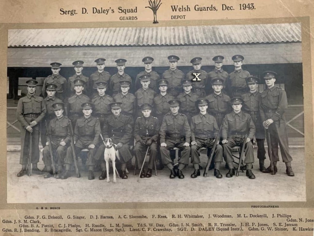 James was from Swansea and enlisted into the General Service Corps on 15 April 1943 (hence the 145***** number in lieu of the normal 237/238/239**** regimental numbers allocated). He was later transferred to the Welsh Guards during the autumn of that year and subsequently posted to 3Bn.