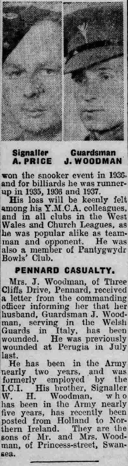 Whilst searching through the British Newspaper Archive last year, I found the below article published by the South Wales Evening Post on 12 February 1945. It contains several useful pieces of information including his address, previous employment, the fact that he was married, previous wounding, details of his parents and where they lived, his brother’s service and a photograph. A veritable treasure trove in a few lines: